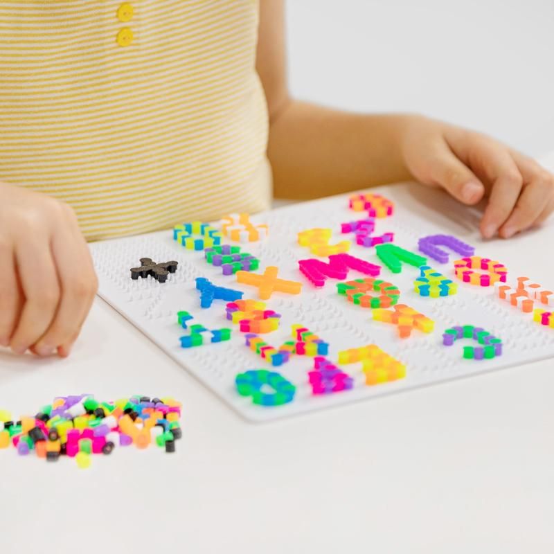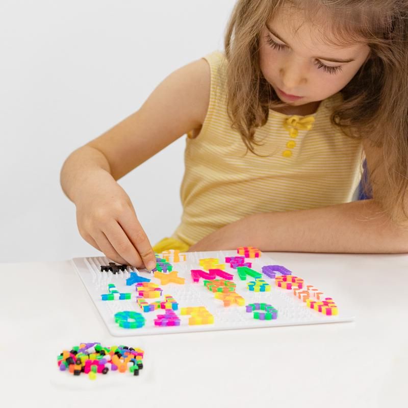 Kreativer Lern- und Bastelspaß garantiert mit diesem bunten Bügelperlen-Set! Über 950 Bügelperlen für beliebige Buchstaben und Zahlen. Die freie Fläche auf der Platte eignet sich perfekt für Rechen-und Satzzeichen oder zum Gestalten von eigenen Motiven. Die fertigen Buchstaben und Zahlen können zu Wörtern oder Rechenaufgaben zusammengelegt werden. Dies fördert die Kreativität, Konzentration und die Feinmotorik und bringt zusätzlich viel Spaß beim Lernen. Besonders viel Spaß macht es, Motive zu erstellen und dazu das passende Wort mit den Buchstaben zu legen!