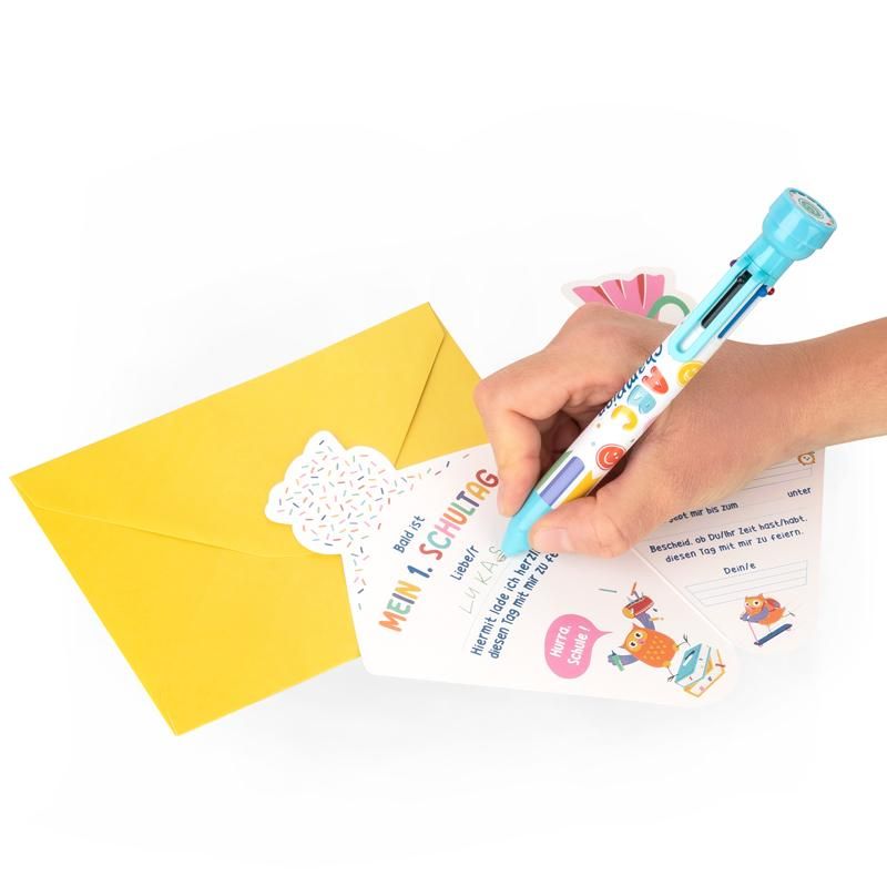 Hurra, endlich Schule! Mit diesem farbenfrohen Einladungskarten-Set wird der 1. Schultag unvergesslich. Lade Freunde und Familie mit diesen 8 ausfüllbaren Schultüten-Motivkarten ein, um diesen besonderen Tag mit Dir zu feiern. Zusammen mit den dazu passenden Briefumschlägen in 4 verschiedenen Farben sind sie die perfekte Kombi, um auf einfache und schnelle Weise zu einer tollen Feier einzuladen.