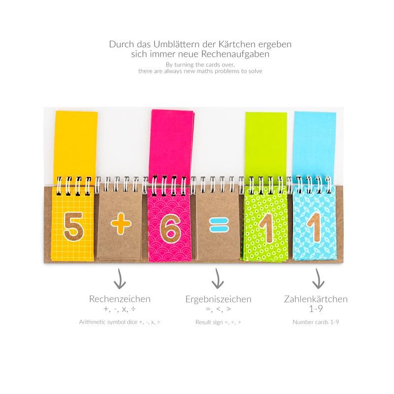 Werde zum Rechenmeister! Egal ob addieren, subtrahieren, multiplizieren oder dividieren - mit diesem Lernkarten-Block zum Aufstellen aus stabilen Karton mit Spiralbindung können Kinder die Grundrechenarten spielend leicht lernen und fleißig üben. Durch das Umblättern der Kärtchen ergeben sich immer wieder neue Rechenaufgaben, die es zu lösen gilt. Fertig? Dann einfach mit dem praktischen Gummibandverschluss verschließen und einpacken.