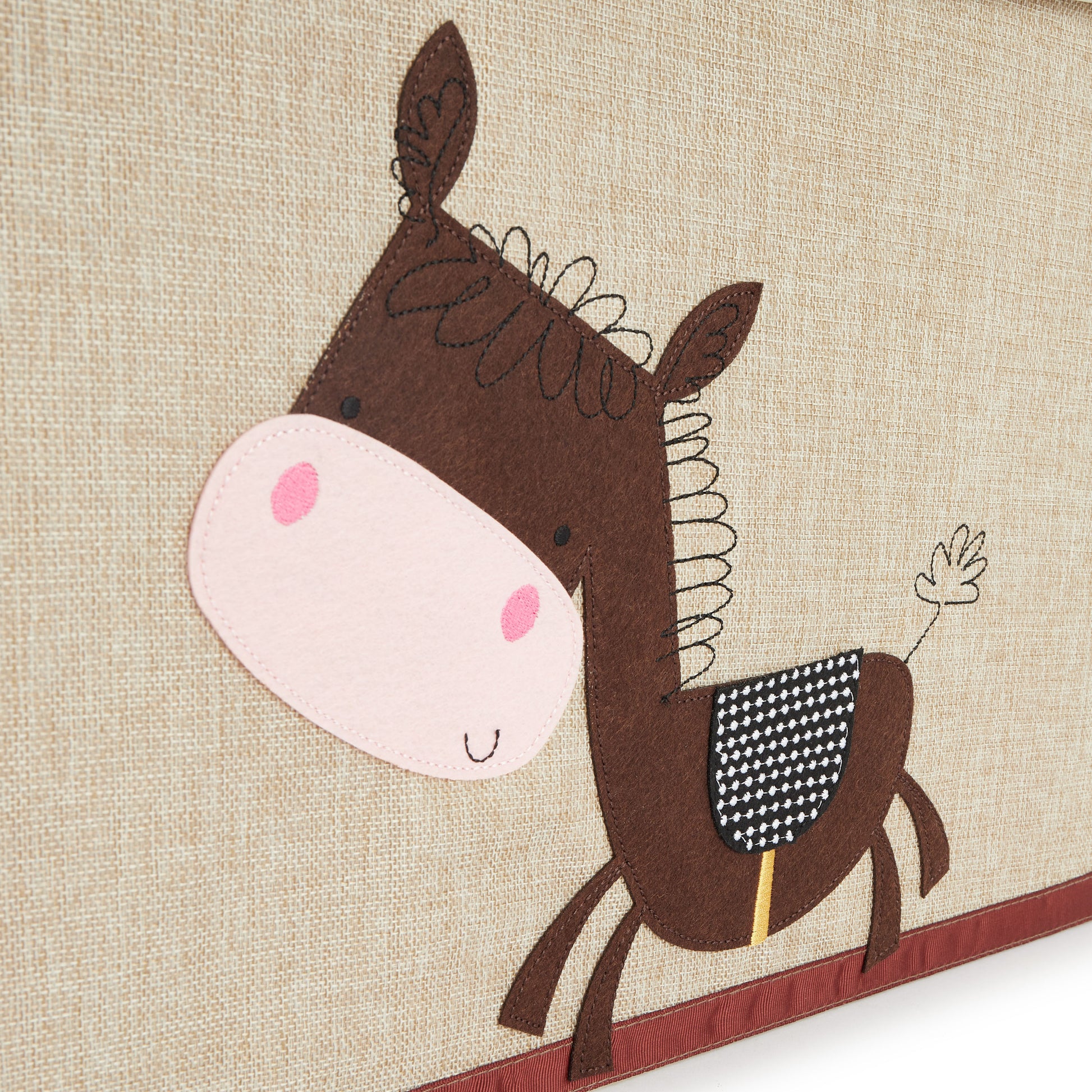 Diese schöne Spielzeugbox von Bieco bringt Ordnung ins Kinderzimmer. Die dekorative Kiste hat einen Deckel zum Aufklappen, der sich mit einem Klettverschluss leicht verschließen lässt. Wird die Aufbewahrungsbox einmal nicht benötigt, kann sie einfach zusammengefaltet werden und verschwindet platzsparend im Schrank. Dank der Tragegriffe an der Seite der Box lässt sie sich spielend einfach transportieren. Mit einem Fassungsvermögen von etwa 65 Litern bietet die schöne Box viel Platz für Lieblingsspielzeug, Kleidung und andere Dinge. Entdecke auch unsere weiteren Aufbewahrungsboxen in groß und klein für das Kinderzimmer mit weiteren niedlichen Motiven.