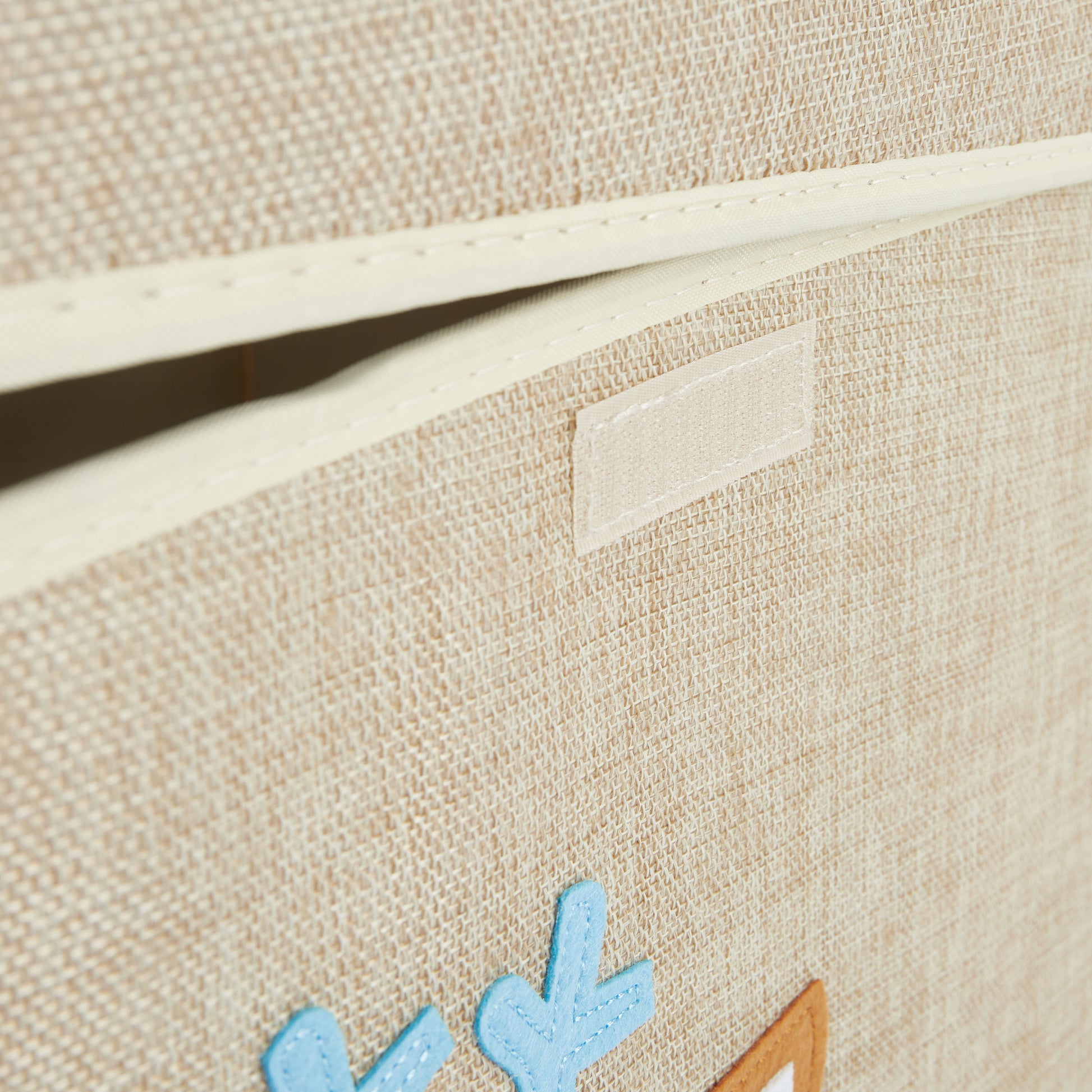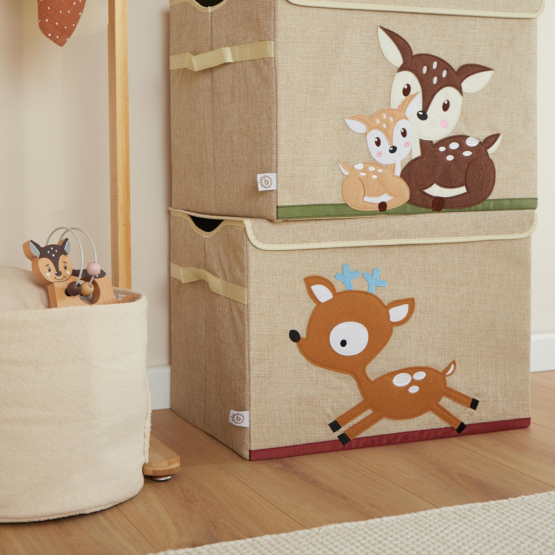 Diese schöne Spielzeugbox von Bieco bringt Ordnung ins Kinderzimmer. Die dekorative Kiste hat einen Deckel zum Aufklappen, der sich mit einem Klettverschluss leicht verschließen lässt. Wird die Aufbewahrungsbox einmal nicht benötigt, kann sie einfach zusammengefaltet werden und verschwindet platzsparend im Schrank. Dank der Tragegriffe an der Seite der Box lässt sie sich spielend einfach transportieren. Mit einem Fassungsvermögen von etwa 65 Litern bietet die schöne Box viel Platz für Lieblingsspielzeug, Kleidung und andere Dinge. Entdecke auch unsere weiteren Aufbewahrungsboxen in groß und klein für das Kinderzimmer mit weiteren niedlichen Motiven.