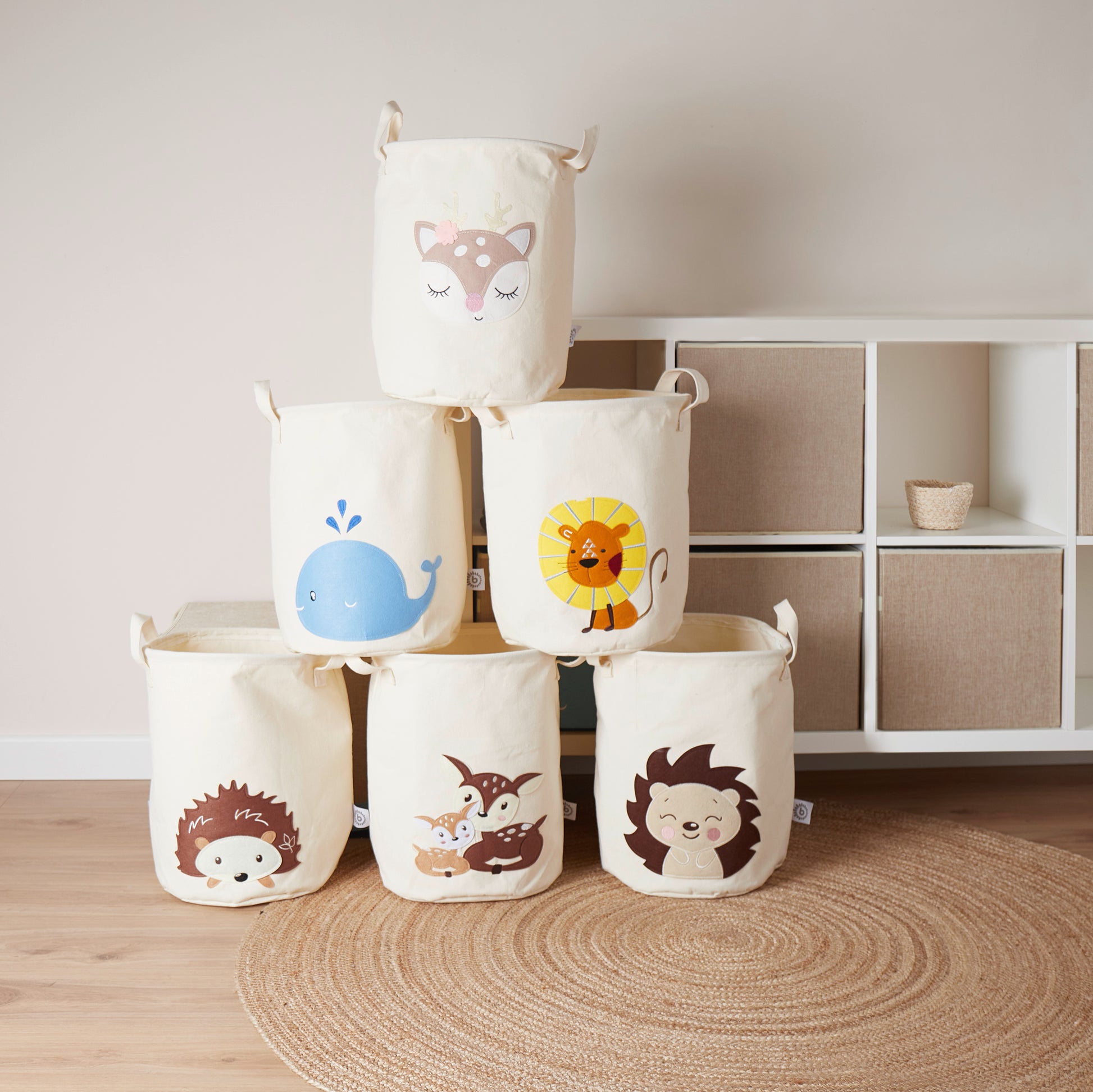Bringt Ordnung und sieht hübsch aus: Mit dem Aufbewahrungskorb von Bieco herrscht im Handumdrehen Ordnung und Struktur. Aus festem Canvas Stoff gearbeitet, steht der Korb stabil und behält seine Form. Ein Stahlring in der Öffnung unterstützt die Formstabilität zusätzlich. Mit seinen extra langen Griffen lässt er sich ganz einfach heben und bewegen. Die wasserfeste PE-Beschichtung auf der Innenseite sorgt für Feuchtigkeitsresistenz, so dass der Korb auch als Wäschesammler zum Einsatz kommen kann. Praktisch: bei Nichtgebrauch einfach zusammenklappen und verstauen. Das schlichte und hochwertige Design machen den Korb zum dekorativen Lieblingsstück – nicht nur im Kinderzimmer.