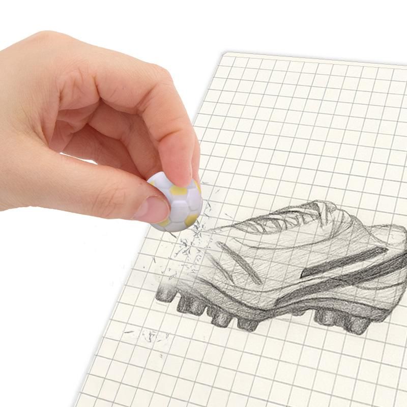 Praktisch und sportlich: Dieses Radiergummi-Set in Form eines Fußballs und eines Fußballschuhs ist ein echter Hingucker auf jedem Schreibtisch. Der Fußball-Radierer wird aufgesteckt als Bleistift-Topper zum Highlight – ideal für alle Fußballfans!