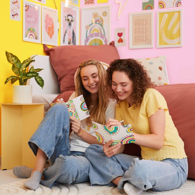 Inhalt: 8 Karten in 4 verschiedenen Designs & 8 Umschläge in 4 verschiedenen Farben (blau, pink, grün, gelb).