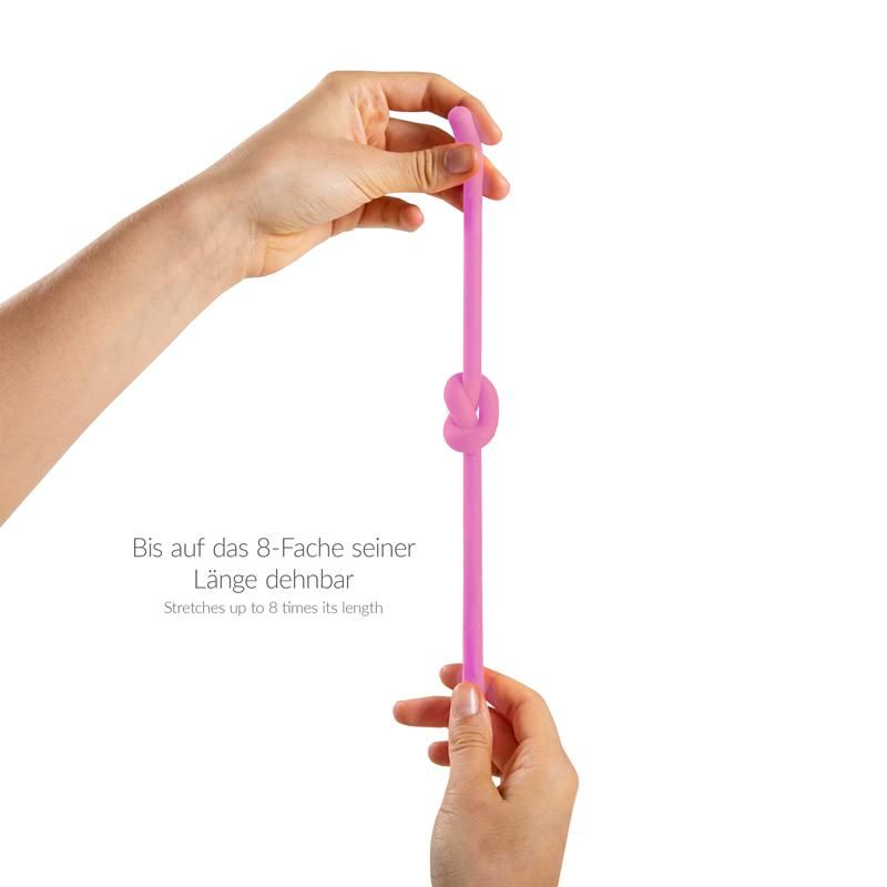 Relax, be Happy and feel good mit der Anti-Langeweile-Glitzerschnur für Jung und Alt - zum Stretchen, Knoten und vieles mehr! Die Powerschnur im praktischen 4er Set mit 4 neuen trendigen Pastellfarben ist bis auf das 8-fache ihrer Länge dehnbar.