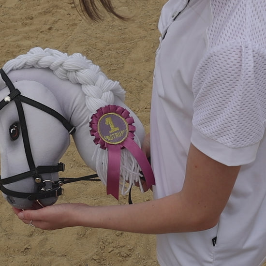 Mit ihrer kristallweißen Garnmähne, die anmutig fließt, ist Hobby Horse Sigrid der Inbegriff von Eleganz und Charme. Ob sie gemütliche Momente im Stall genießt oder stolz in die Reitarena trabt – ihr schickes rotes Show-Set ergänzt sie perfekt und macht jeden Ritt zu einem stilvollen Abenteuer.