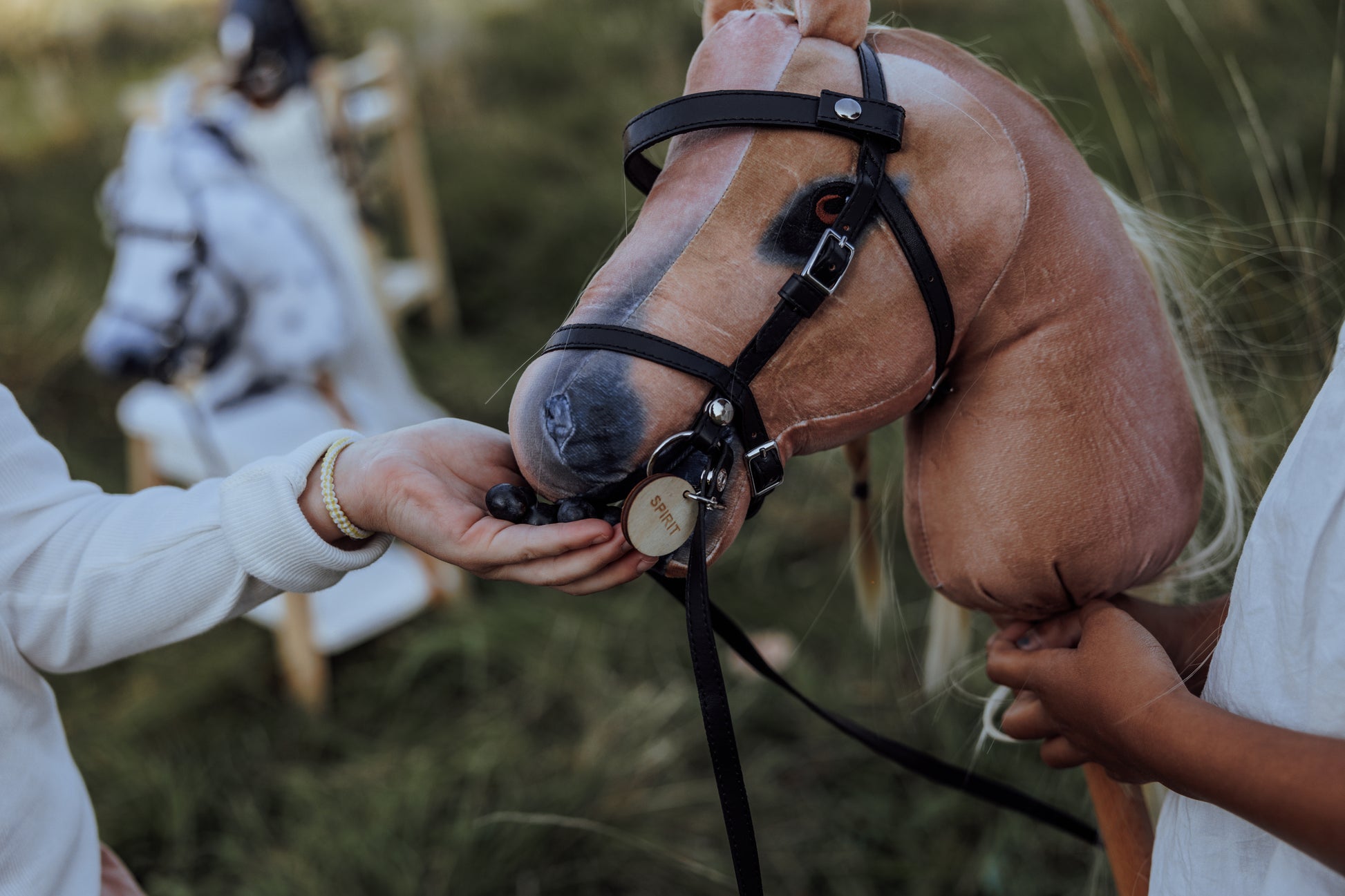 Geben Sie Ihren Kindern magische Spiel-erlebnisse mit unserem neuen byASTRUP® Hobby-Pferd Spirit. Spirit ist ein elegantes hellbeiges Hobby-Pferd mit einer hellblonden Mähne, das darauf ausgelegt ist, die Fantasie und Kreativität der Kinder zu inspirieren. Mit offenem Maul erleben Kinder ein realistisches Gefühl beim Anlegen von Spirit oder beim Füttern mit dem byASTRUP® Fütterungs-Set.