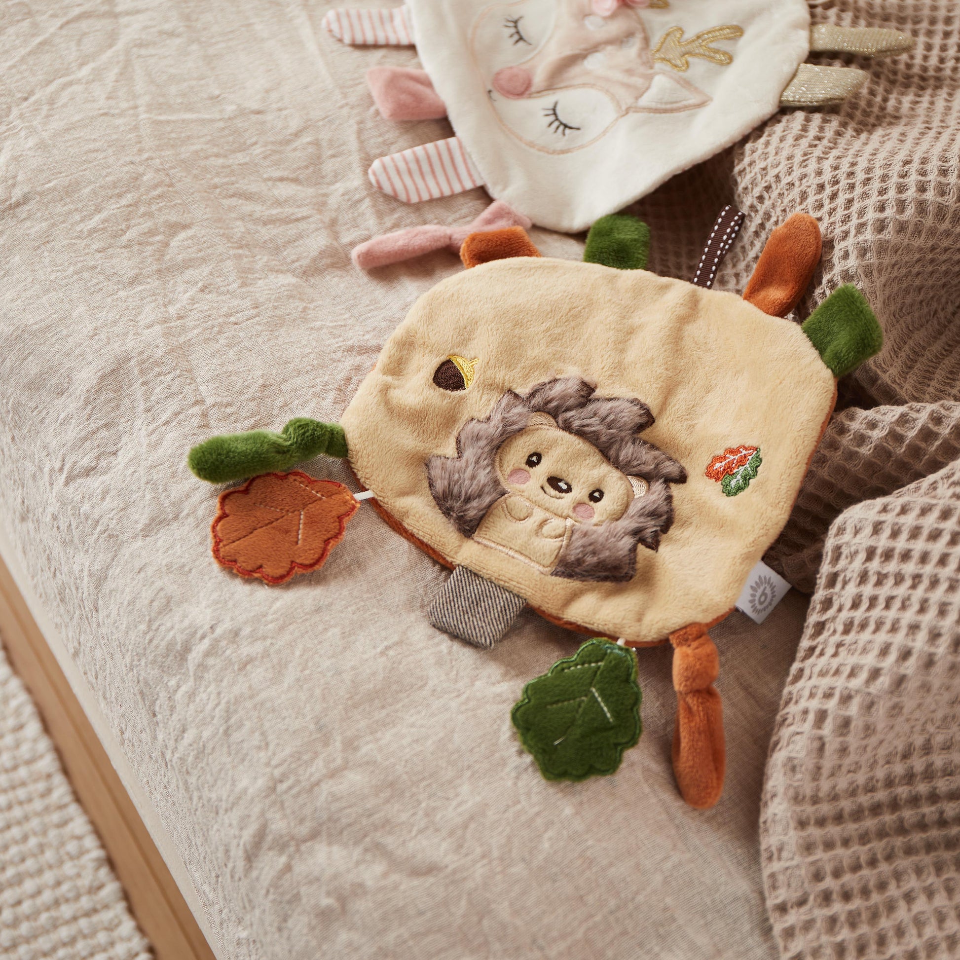 Das Igel-Knistertuch von Bieco ist ein treuer Begleiter in den ersten Lebensjahren Deines Babys. Der Igel sieht nicht nur super süß aus, sondern lädt sowohl zum Kuscheln als auch zum Spielen ein. Der weiche, kuschelige Stoff fühlt sich schön und geschmeidig an. Verschiedene Strukturen fördern den Tastsinn und schicken die kleinen Hände auf Entdeckungsreise. Die Knisterfolie im Inneren spricht den Hörsinn deines Babys an. Babys lieben Tags und Knoten! Daher hat unser Knistertuch extra viele davon, zum Ziehen, Nuckeln und Fühlen. Die natürlichen Farben und das niedliche Igeldesign machen das Knistertuch zu einem stylischen Begleiter, der Eltern und Kind begeistert.
