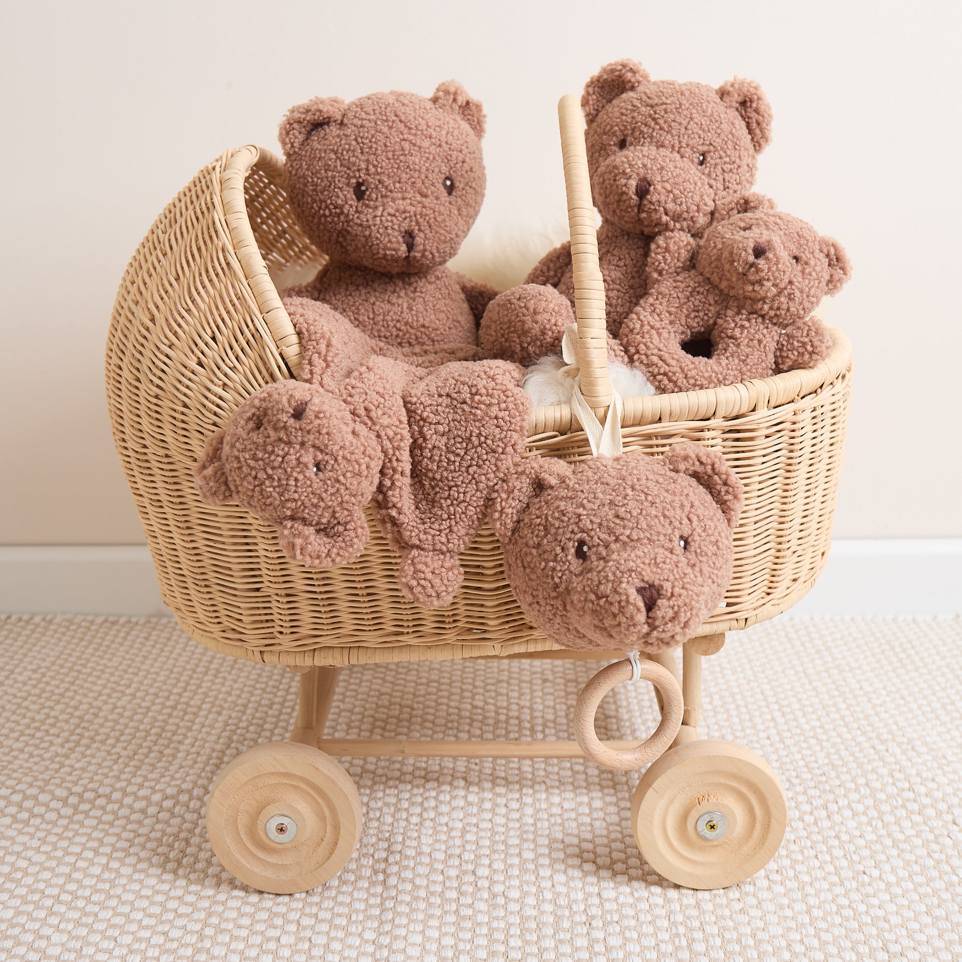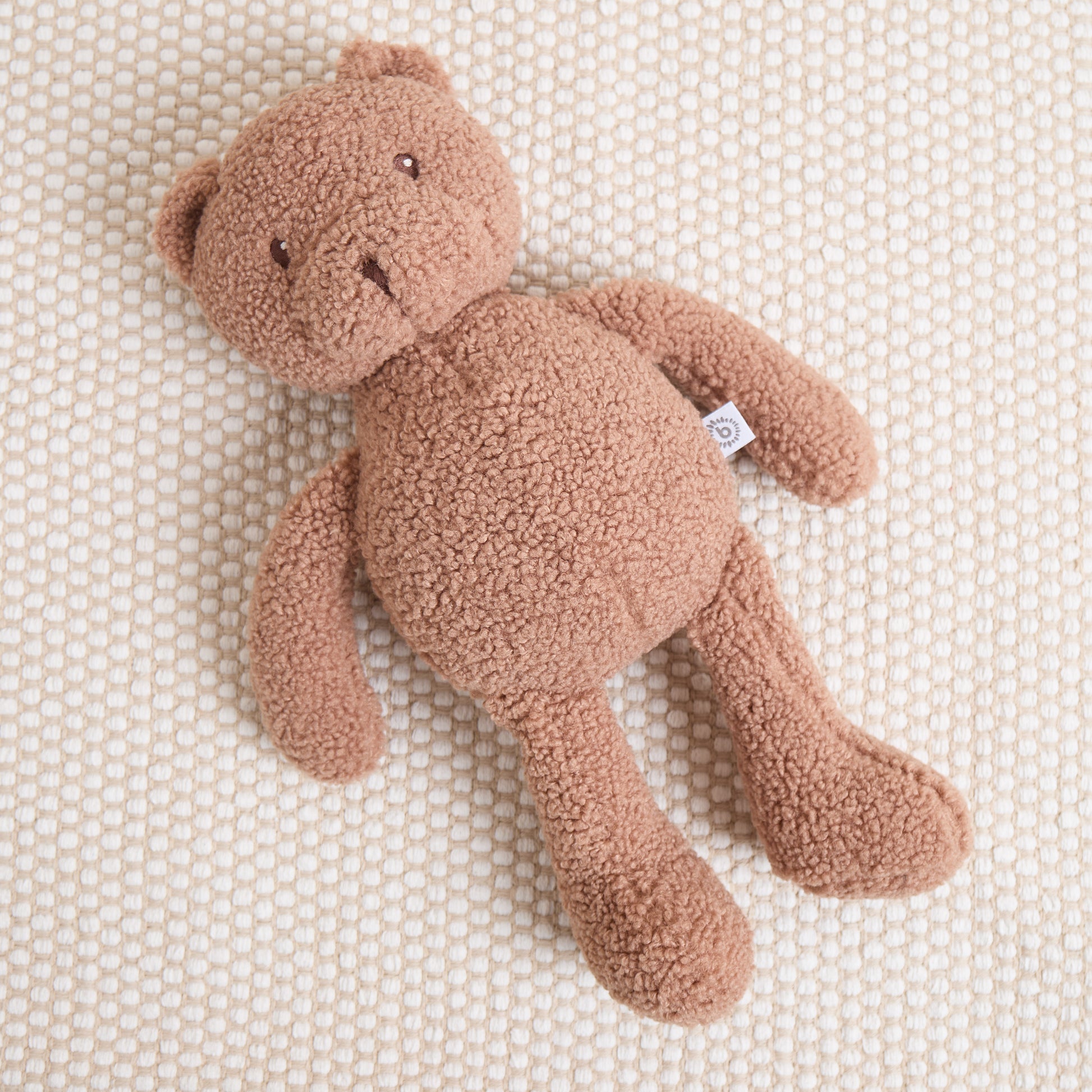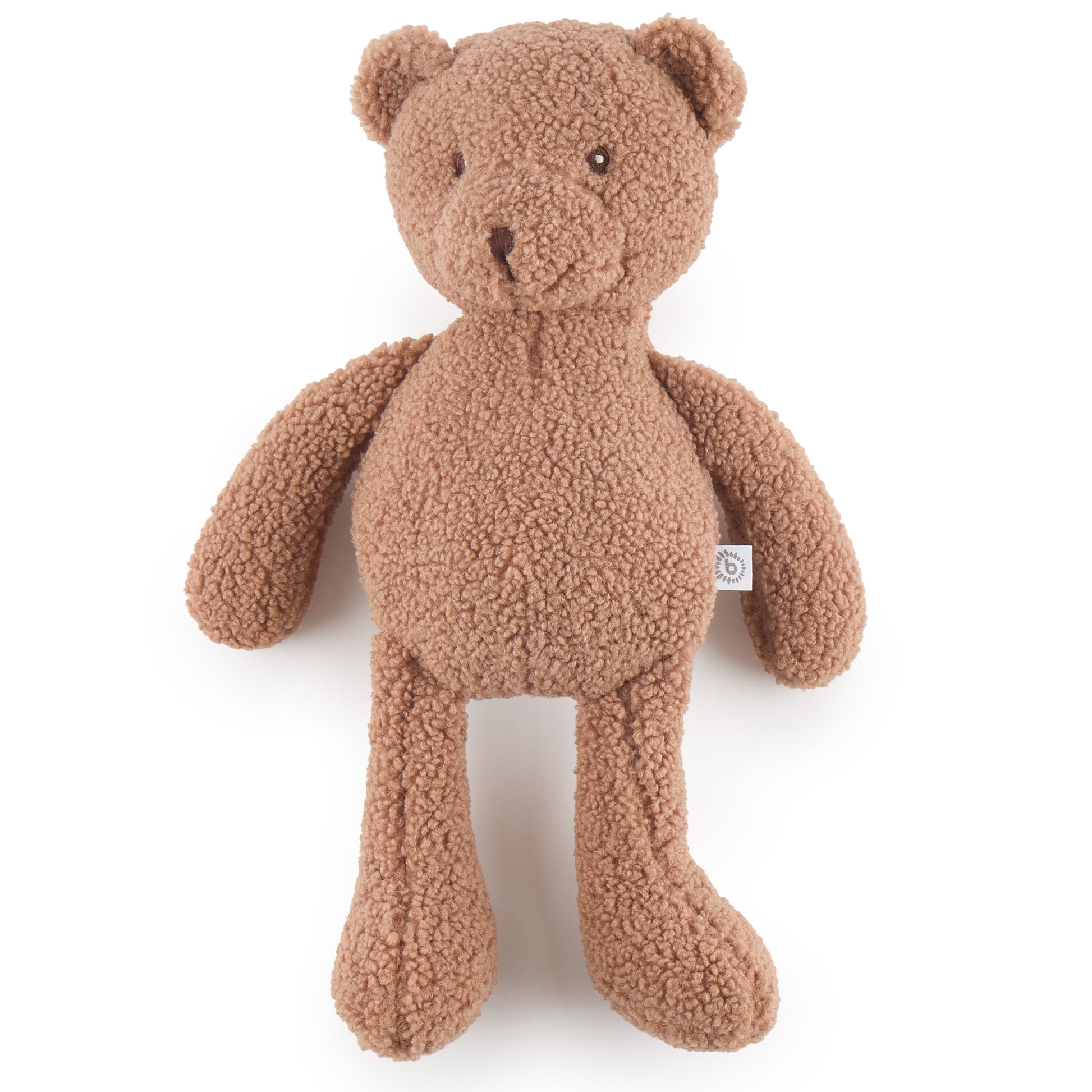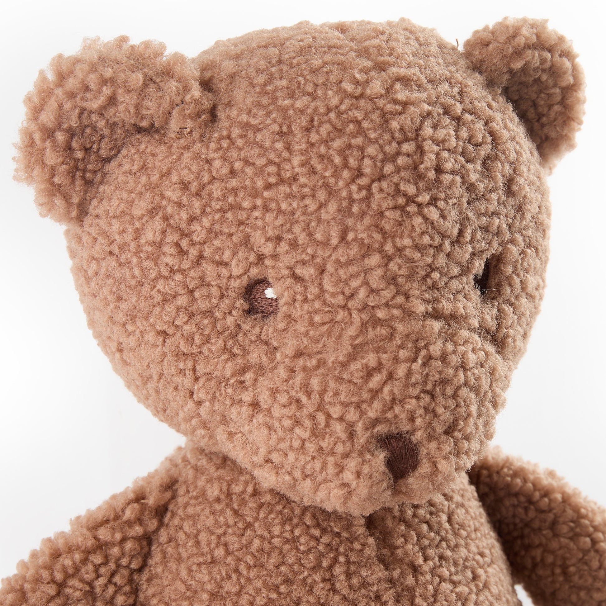 Mit einem Design, dass einen Hauch von Nostalgie hervorruft ergänzt Bär Mika unser Kuscheltiersortiment um einen absoluten Klassiker. Der besonders flauschige und trendige Bouclé in einem warmen Schokoladenton geben Mika einen modernen Look. Mika fühlt sich besonders soft an und dein Schatz kann sich so richtig schön ihn rein kuscheln. Arme und Beine hängen lässig am Bärchen und stören nicht, wenn Mika als Kuschelkissen genutzt wird. Perfekt zum Einschlafen und Liebhaben!