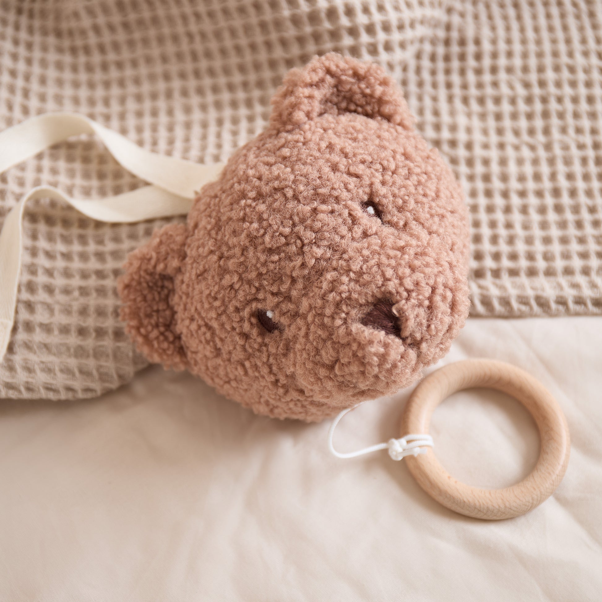 Mehr als nur eine Baby Einschlafhilfe. Der knuffige Bär Mika spielt die wundervolle Melodie von Brahms Wiegenlied, auch bekannt als „Guten Abend, gut' Nacht“. Er ist außerdem super flauschig und ist damit nicht nur zum Hören, sondern auch zum Drücken, Greifen und Tasten. Dein Baby wird den Bären lieben! Er hilft Deinem kleinen Spatz in einen ruhigen Schlaf zu finden und sich in wohlige Träume zu wiegen. Die Baby Spieluhr wird ganz einfach durch ziehen an dem Holzring aufgezogen. Mit seinen praktischen Bändern lässt sich Mika überall befestigen. Ein liebevoller Begleiter ab der Geburt an.