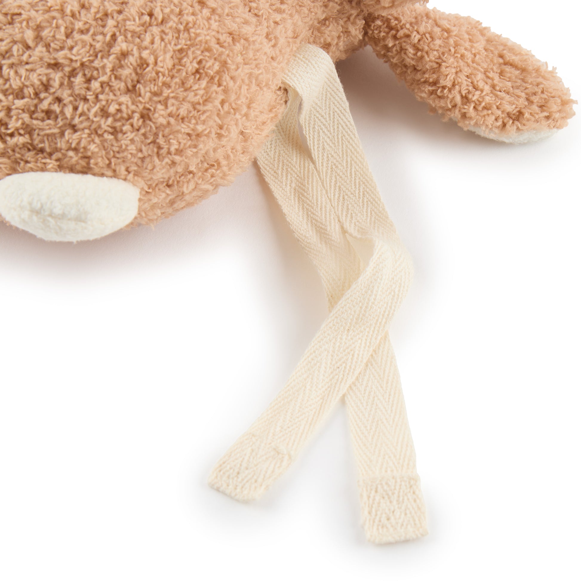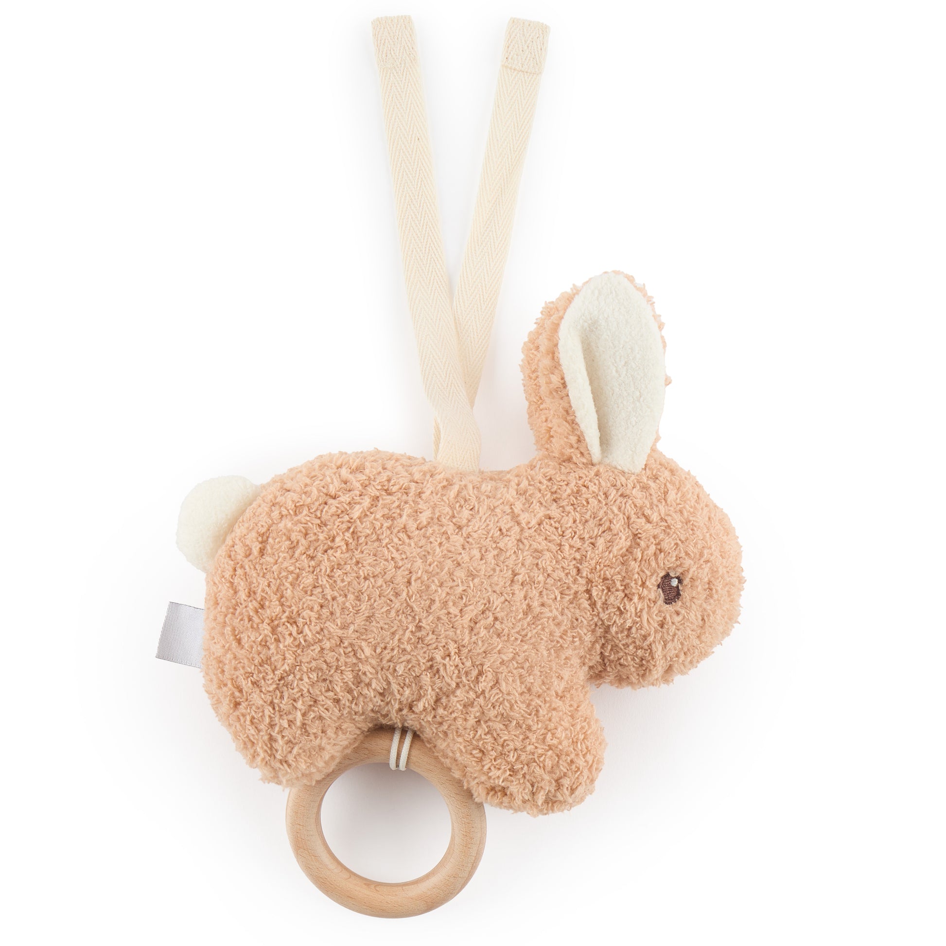Mehr als nur eine Baby Einschlafhilfe. Derweiche Hase Fine spielt die wundervolle Melodie von Brahms Wiegenlied, auch bekannt als „Guten Abend, gut' Nacht“. Sie ist außerdem super flauschig und ist damit nicht nur zum Hören, sondern auch zum Drücken, Greifen und Tasten. Dein Baby wird den Hasen lieben! Fine hilft Deinem kleinen Spatz in einen ruhigen Schlaf zu finden und sich in wohlige Träume zu wiegen. Die Baby Spieluhr wird ganz einfach durch ziehen an dem Holzring aufgezogen. Mit ihren praktischen Bändern lässt sich Fine praktisch überall befestigen. Ein liebevoller Begleiter ab der Geburt an.