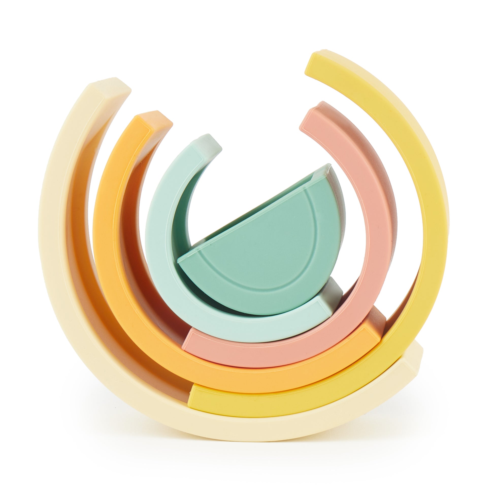 6-teiliges Set aus 100% Silikon. Feinmotorik, Farberkennung oder offenes Montessori-Spiel - der Regenbogen ist perfekt für spielerisches Lernen. Silikon ist langlebig und bruchsicher und einfach mit Wasser und milder Seife zu reinigen. Entdecke unsere Produktserie Tropical Vibes mit vielen schönen Lernspielzeugen aus Silikon für drinnen und draußen.