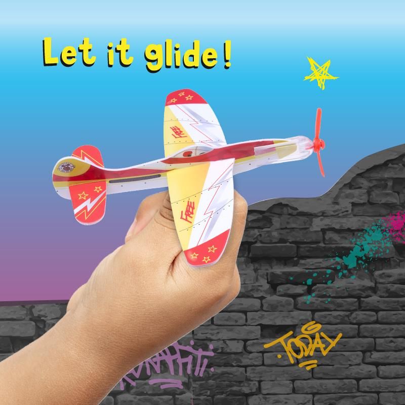 Cooles Flugvergnügen zum Selbstbauen: Die Einzelteile lassen sich ganz einfach zusammensetzen und beim Flug dreht sich der Propeller. Perfekt für Outdoor-Spaß!