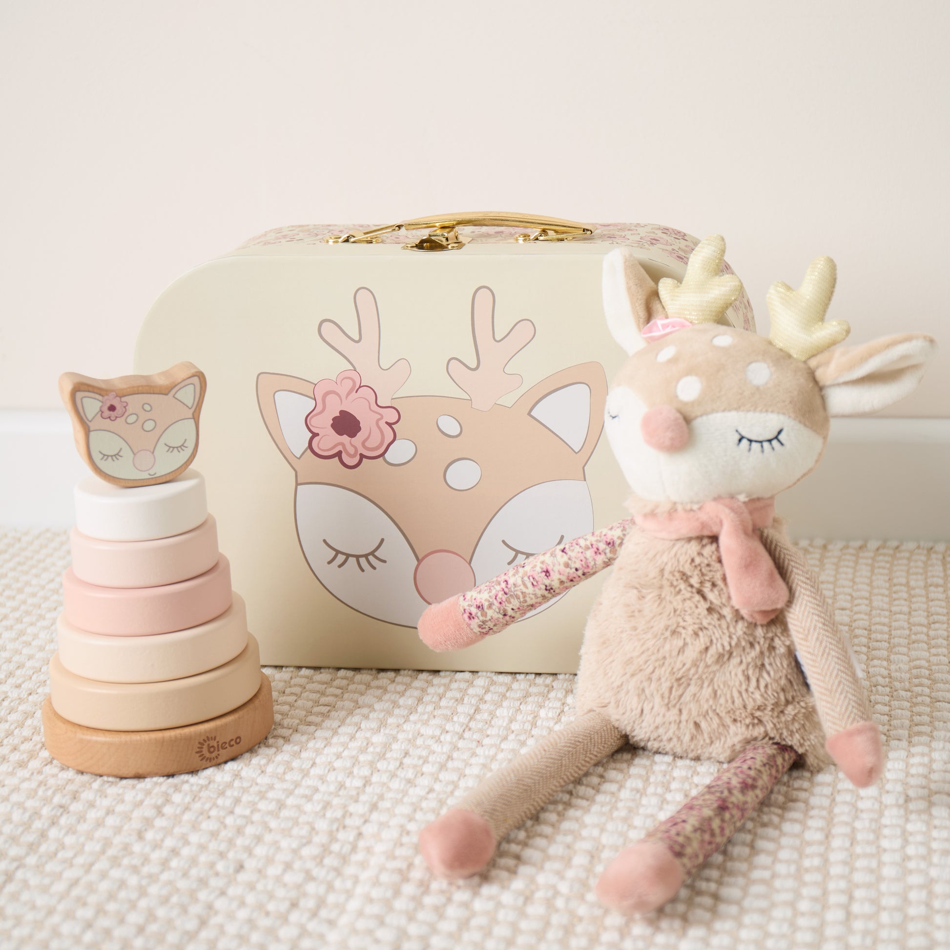 Ein Freund für alle Fälle: Das niedliche Reh Ella mit dem verträumten Blick wird Deinem Baby ein treuer Begleiter in allen Momenten sein. Durch die unterschiedlichen Stoff- Strukturen bietet das Plüschtier viele Greif- und Tatst-Möglichkeiten. Das Kuscheltier ist samtig weich und wird Dein Baby tagsüber bei Abenteuern sowie nachts im Land der Träume begleiten, Freude und Wärme schenken. Mit einer Größe von 44 cm, hat das flauschige Reh die perfekte Größe zum Drücken und Schmusen für Dein Baby.