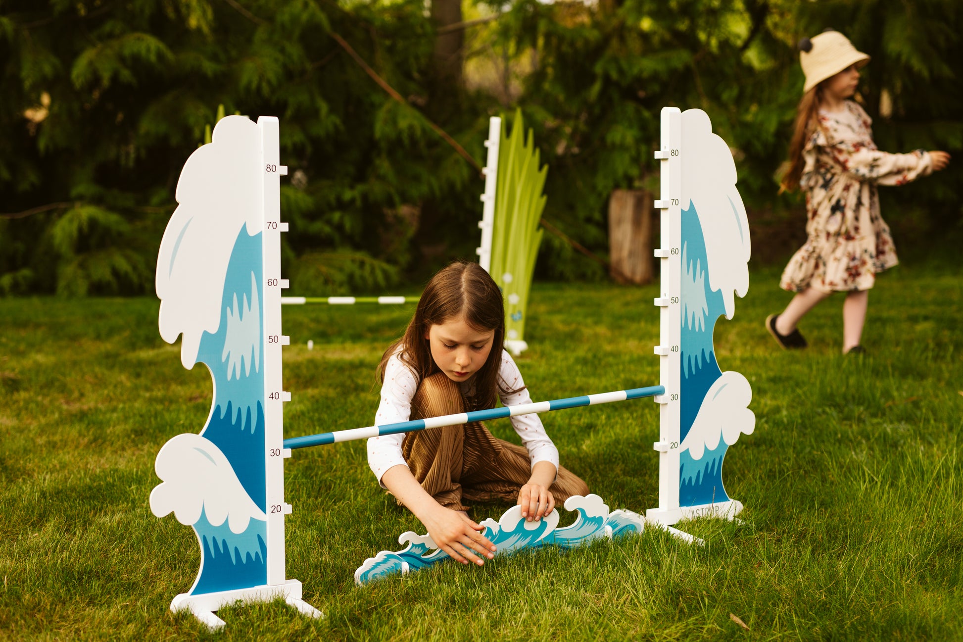 Erweitern Sie Ihr Angebot um eine aufregende und fantasievolle Attraktion: den byASTRUP® Steckenpferd-Springparcours. Dieses thematisch gestaltete Hindernis lädt Kinder dazu ein, ins tiefe Meer zu springen oder sich der Herausforderung zu stellen, die hohe Burgmauer zu überwinden – unendliche Spielmöglichkeiten inklusive.