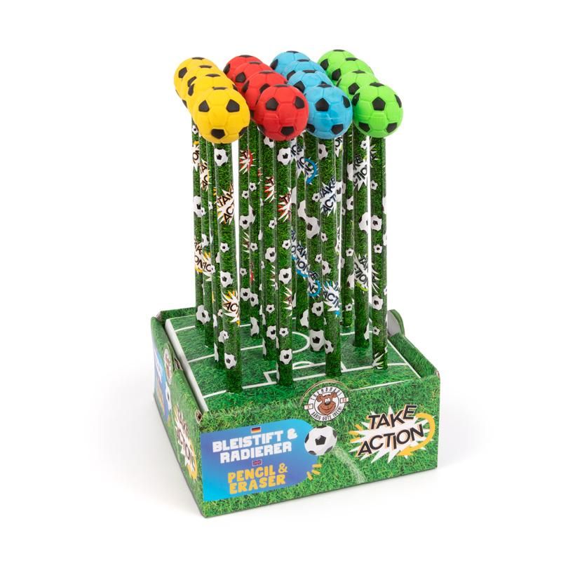 TAKE ACTION BLEISTIFTE & RADIERER FUSSBALL, 4-FACH SORTIERT