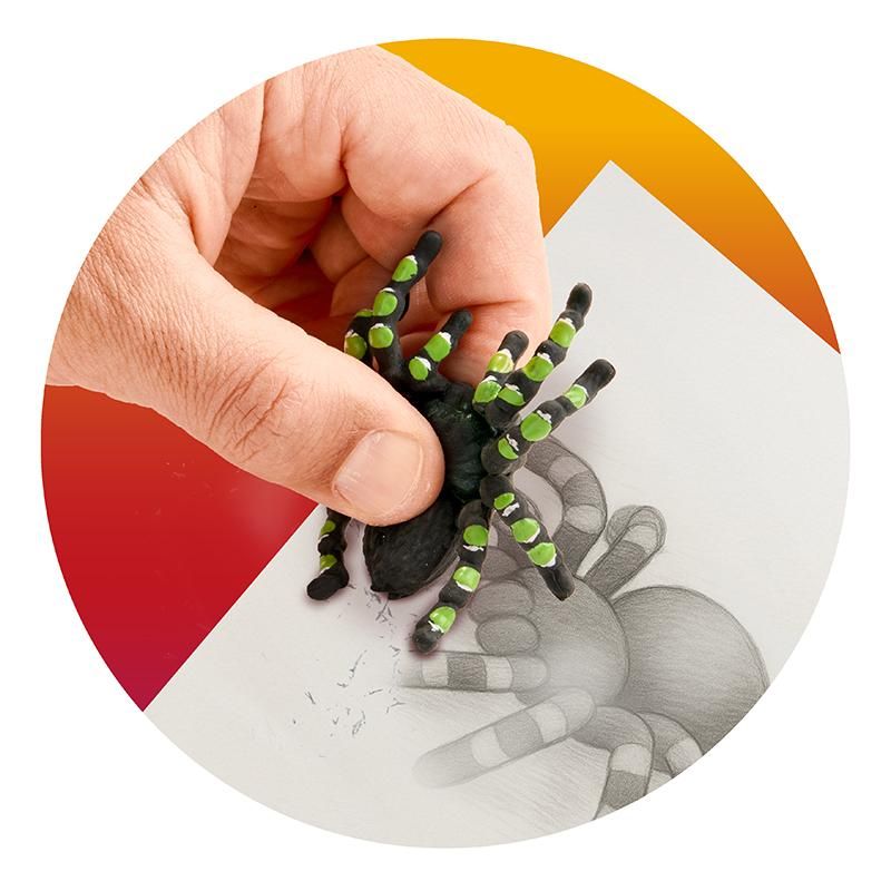 Ein echter Hingucker: Dieser Radiergummi in Form einer realistischen Tarantel wird garantiert alle Blicke auf sich ziehen. Ideal, um auf deinem Schreibtisch eine Portion Grusel zu verbreiten!